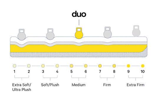 Experience the Duo difference by test-driving a mattress at one of our stockists, or confidently purchase one of our mattresses online. Rest assured with our 100-day money-back guarantee, ensuring you find the perfect firmness for your needs.